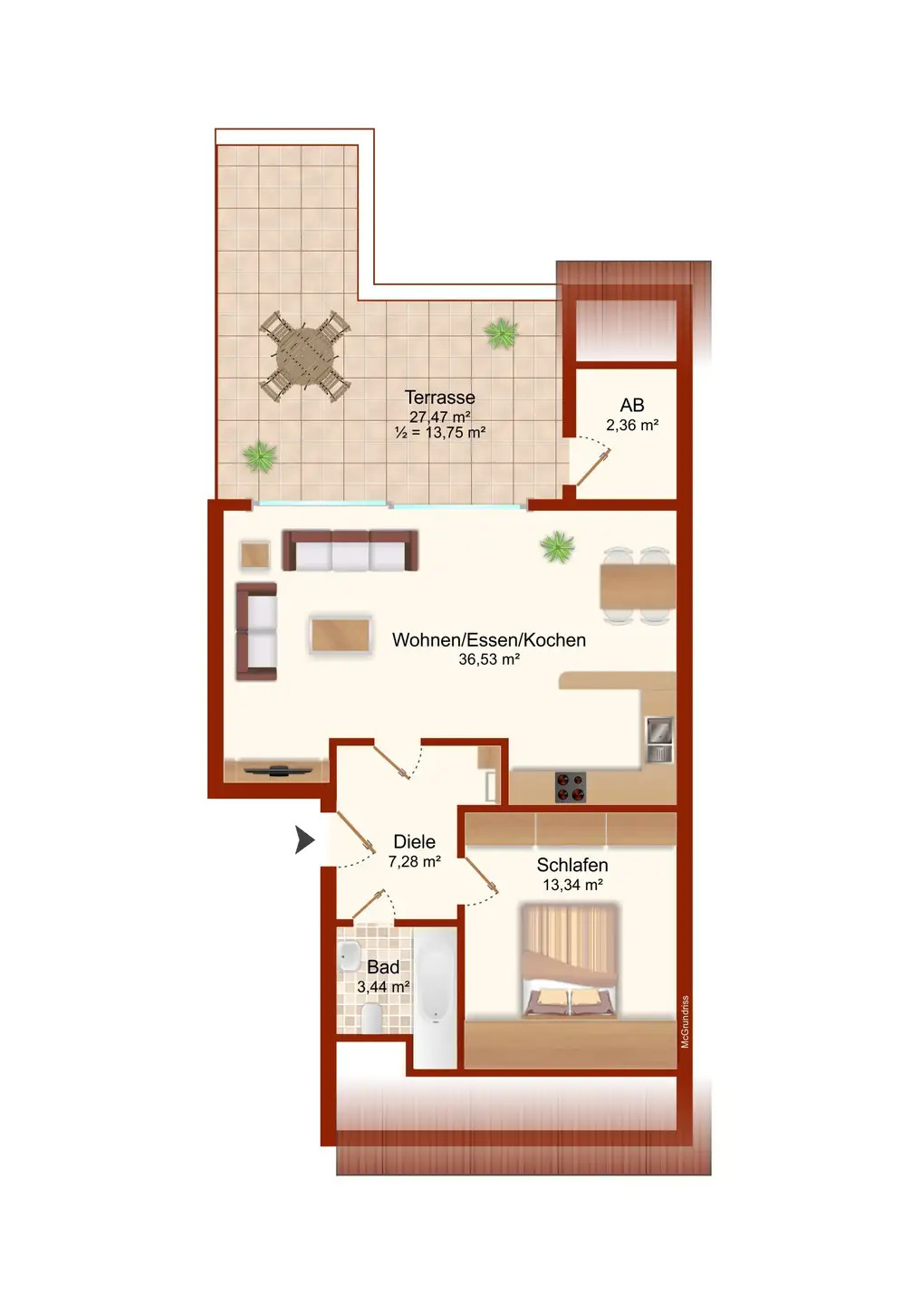 | Balkon/Terrasse Fläche ca. | 13,75 m² | ||